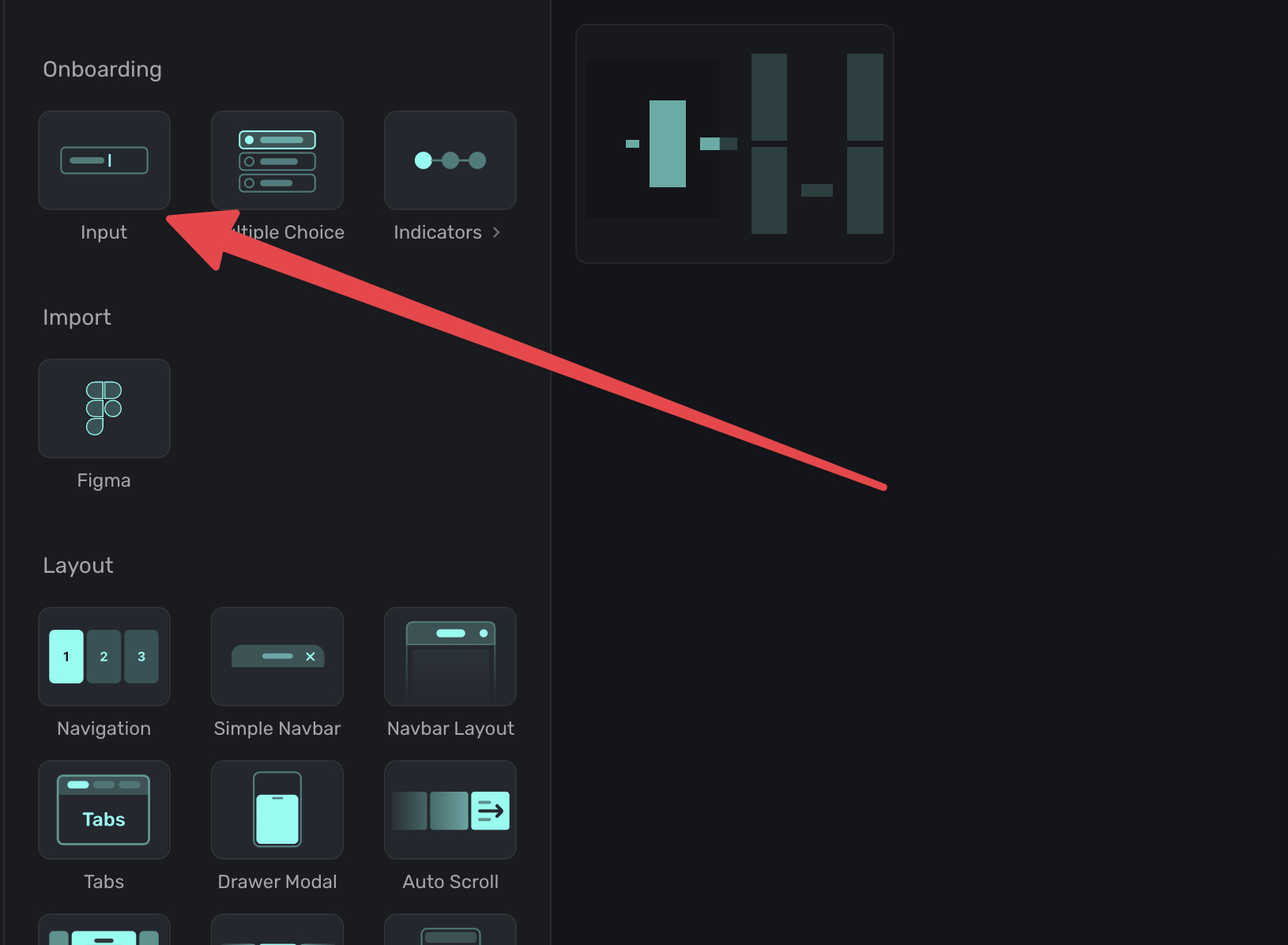 The input element lets users type a response directly into your paywall or flow. Use it to capture names, email addresses, feedback, or any custom text input.