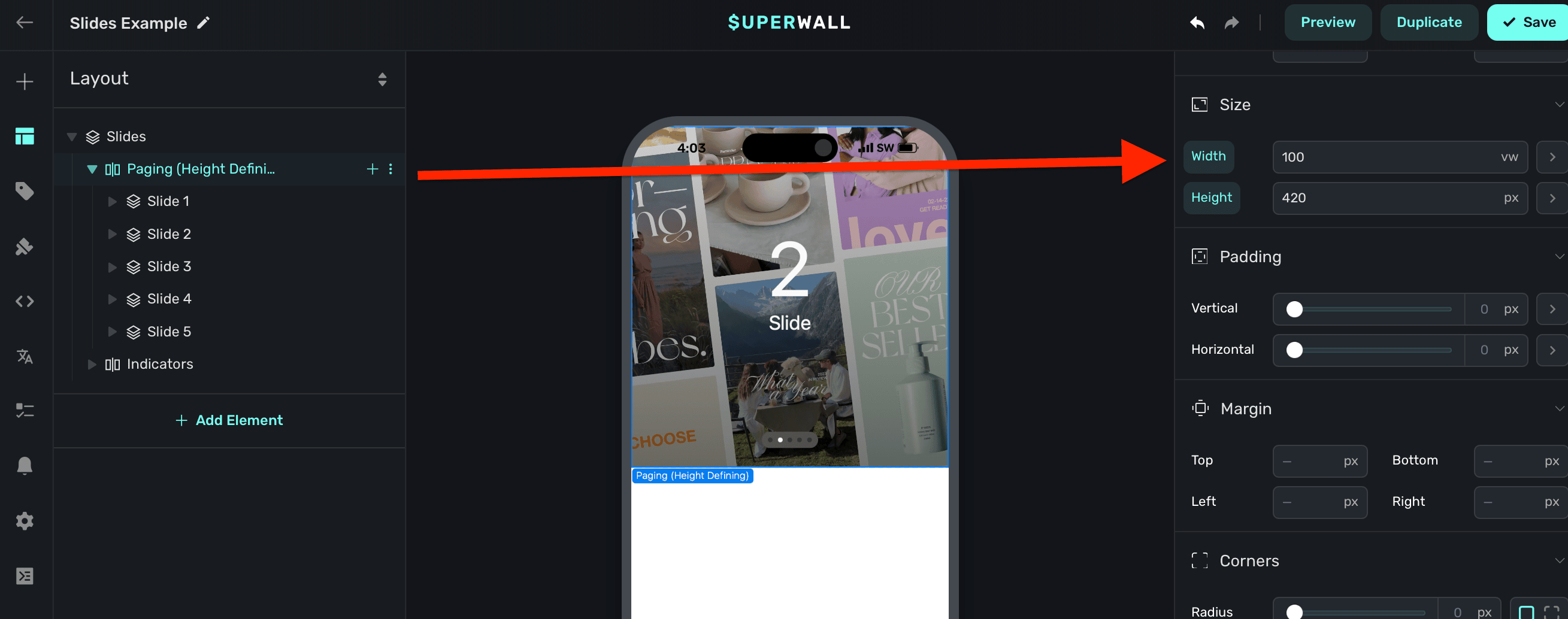 Use Superwall's slides component to create a horizontal or vertical slide UX driven by a user's gesture.