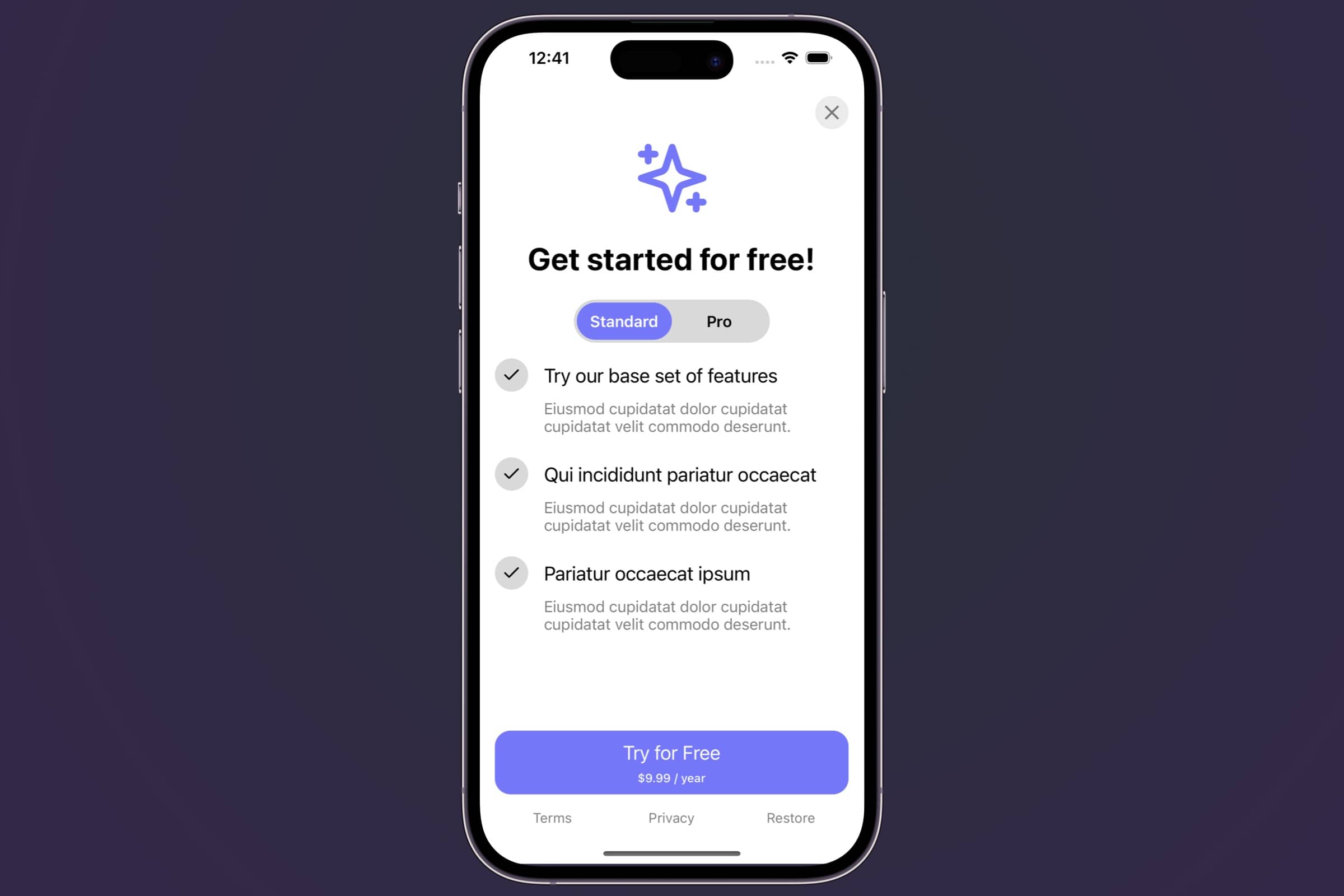 For example, in the paywall below, perhaps you're interested in tracking when people switch the plan from "Standard" and "Pro":